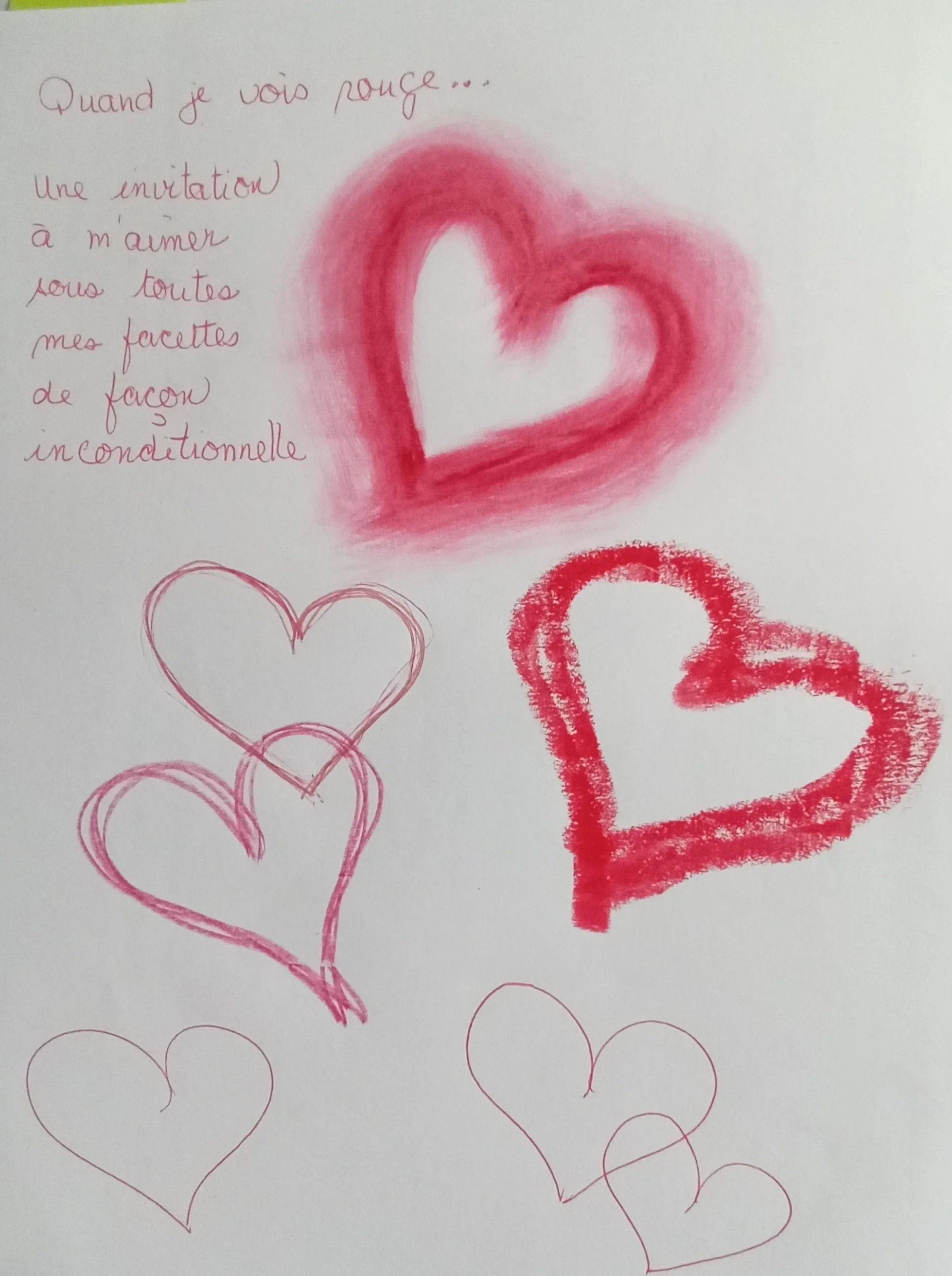 - Les termes liés à la couleur choisie. Exemple avec le rouge : le cœur, le sang, l’arrêt « stop », le feu, la colère, la passion….